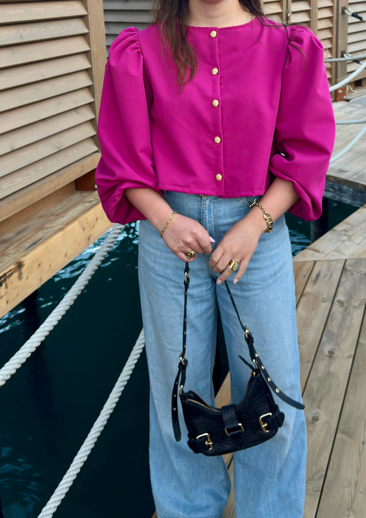 Say hi to LIV: een luchtige top met een zachte flow en bold pofmouwen die meteen je hele look tillen.